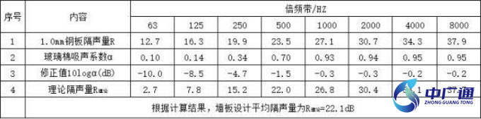 據(jù)上述計算,隔音板理論平均隔聲量不低于 22. 1dB ,滿足設計要求。