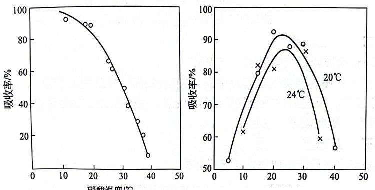 (1)溫度 該法主要是物理吸收過程,因此降低溫度有利于吸收。溫度與凈化效率的關(guān)系見圖8-7。